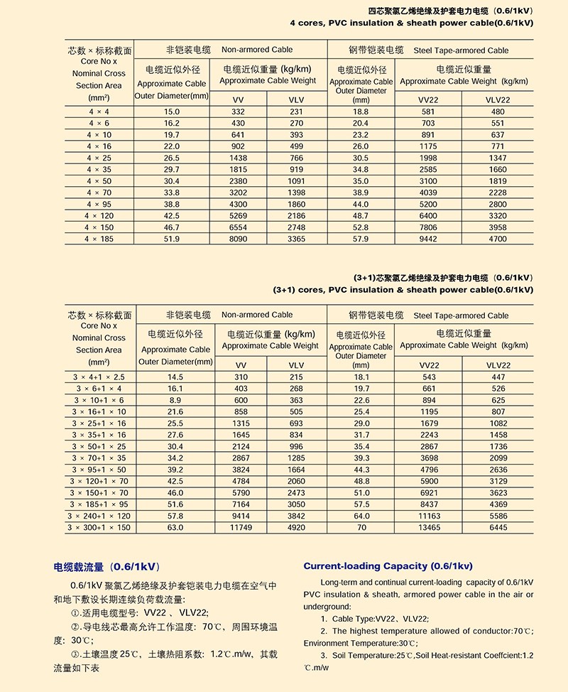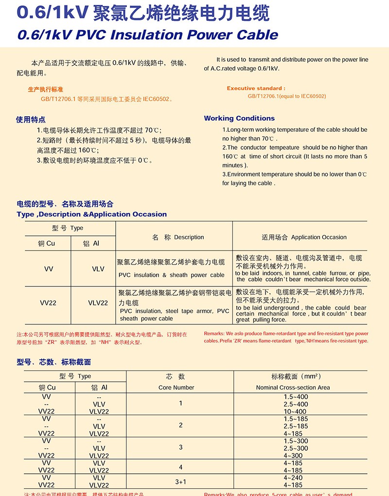 0.6/1KV聚氯乙烯J緣電力電纜